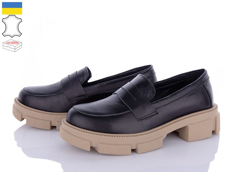 Туфли Gleb M296 чорний-бежевий шкіра