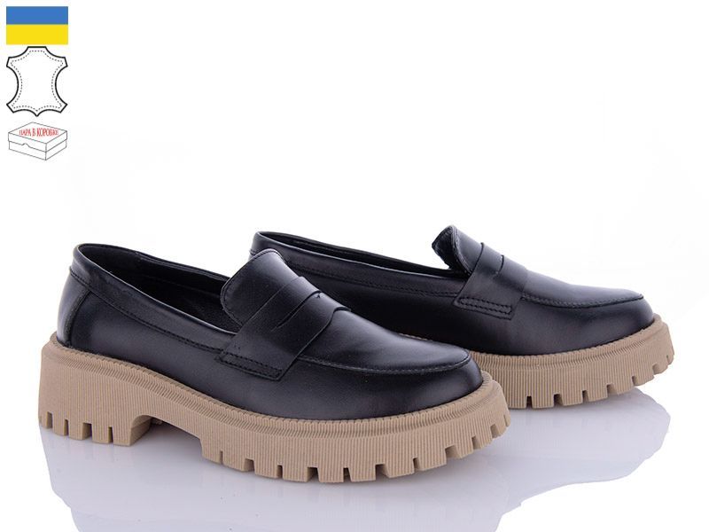Туфли Gleb M297 чорний-бежевий шкіра
